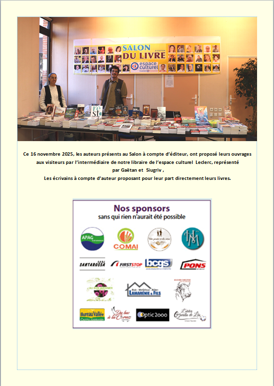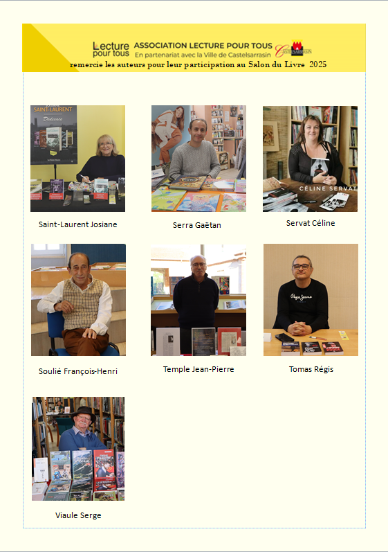 Auteurs invités au Salon du livre du 16 novembre 2025