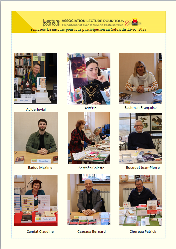 Présentent leur ouvrage co-écrit. Christophe Vallar, originaire de Castelsarrasin, se distingue par sa capacité à retranscrire les émotions et les sensations de manière vivante et poétique. Trois ouvrages déjà parus. Ses récits sont imprégnés de souvenirs olfactifs et visuels, offrant une immersion dans les paysages et les atmosphères de son enfance. Chrisian Laguille est né en 1967 à Montauban, enseignant formateur en gestion, correspondant de presse, auteur compositeur interprète. Six ouvrages déjà parus ( romans et nouvelles). L’auteur décrit son processus d’écriture comme une écoute de ses personnages, bien qu’il reconnaisse que ses œuvres reflètent une part de lui-même. Il avoue avoir un besoin permanent d’écrire, une passion qui l’anime depuis longtemps.
