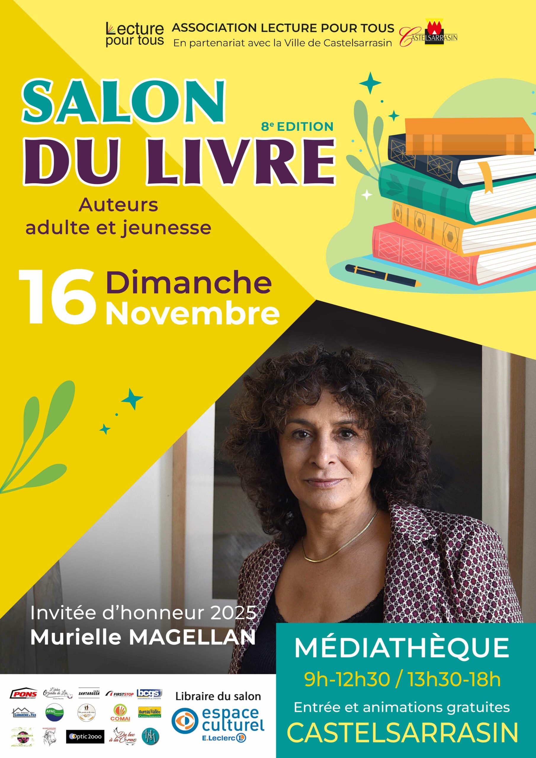 Médiathèque de Castelsarrasin Rue des écoles, CastelsarrasinComme tous les ans, nous organisons notre salon du livre à destination de tous les publiques. Il se tiendra dans les locaux de la médiathèque de Castelsarrasin et 35 auteurs seront conviés pour y présenter leurs ouvrages. Cette année, notre invitée d'honneur sera Murielle Magellan dont le fim, inspiré de son roman "La page Blanche",...